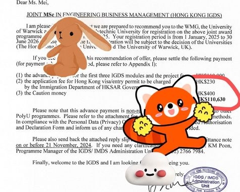 我香港留学的负责老师是唐老师,文书是Oliver老师,两位老师都很负责,也特别有耐心。从我决定留学开始,唐老师就帮我做规划,当时已经是末班车了,虽然很遗憾没有九月入学,但好在在唐老师的帮助下顺利拿到了港理工春季入学的offer,感谢Oliver老师在文书方面也超级优秀,帮我修改我的ps,cv,从申请材料到面试辅导都是Oliver老师在全程指导,给我节省了大量时间和精力,同时也避免了一直等的时间成本的消耗,再次感谢两位老师!!!